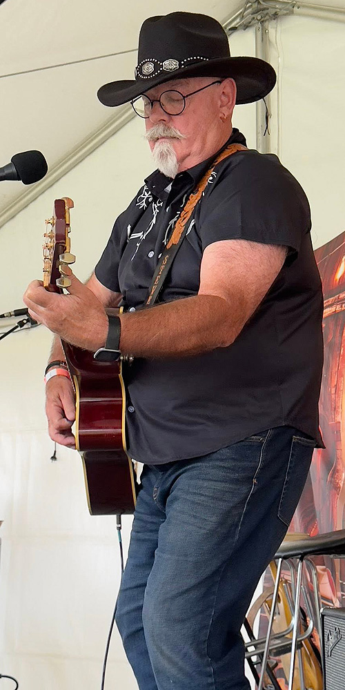 Steve utilises good quality backing tracks, accompanied by his trustee rhythm guitar.